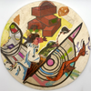 MADE IN THE SHADE | Shield 1 (2023) 4 ft. diameter // mixed media on mounted rotating support [temporary tattoos, coloring books, acrylic paint, crayon, pastel, pencil, marker]